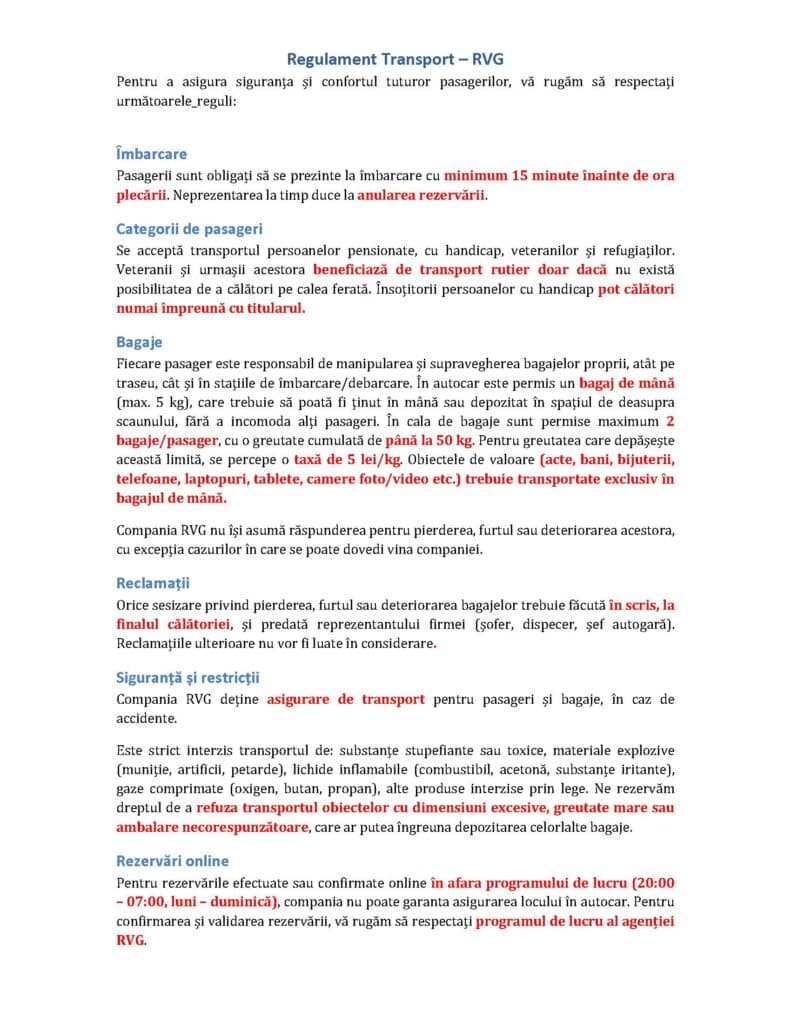 Punând accent pe calitatea superioară a serviciilor oferite, RVG este mândră de capacitatea sa de a își îndeplini promisiunile și de a respecta cu precizie graficul orar al traseelor. Întotdeauna ne străduim să tratăm fiecare client cu cea mai mare corectitudine, fiind o dovadă vie a faptului că pentru RVG, calitatea și integritatea nu sunt doar promisiuni, ci fac parte din valorile fundamentale ale companiei noastre.